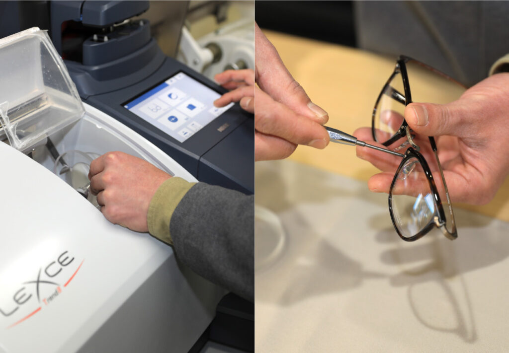 また、精密な機械を使い、お客様のひとつひとつの願いや希望を集め、心を込めて日々眼鏡作りを行っています。